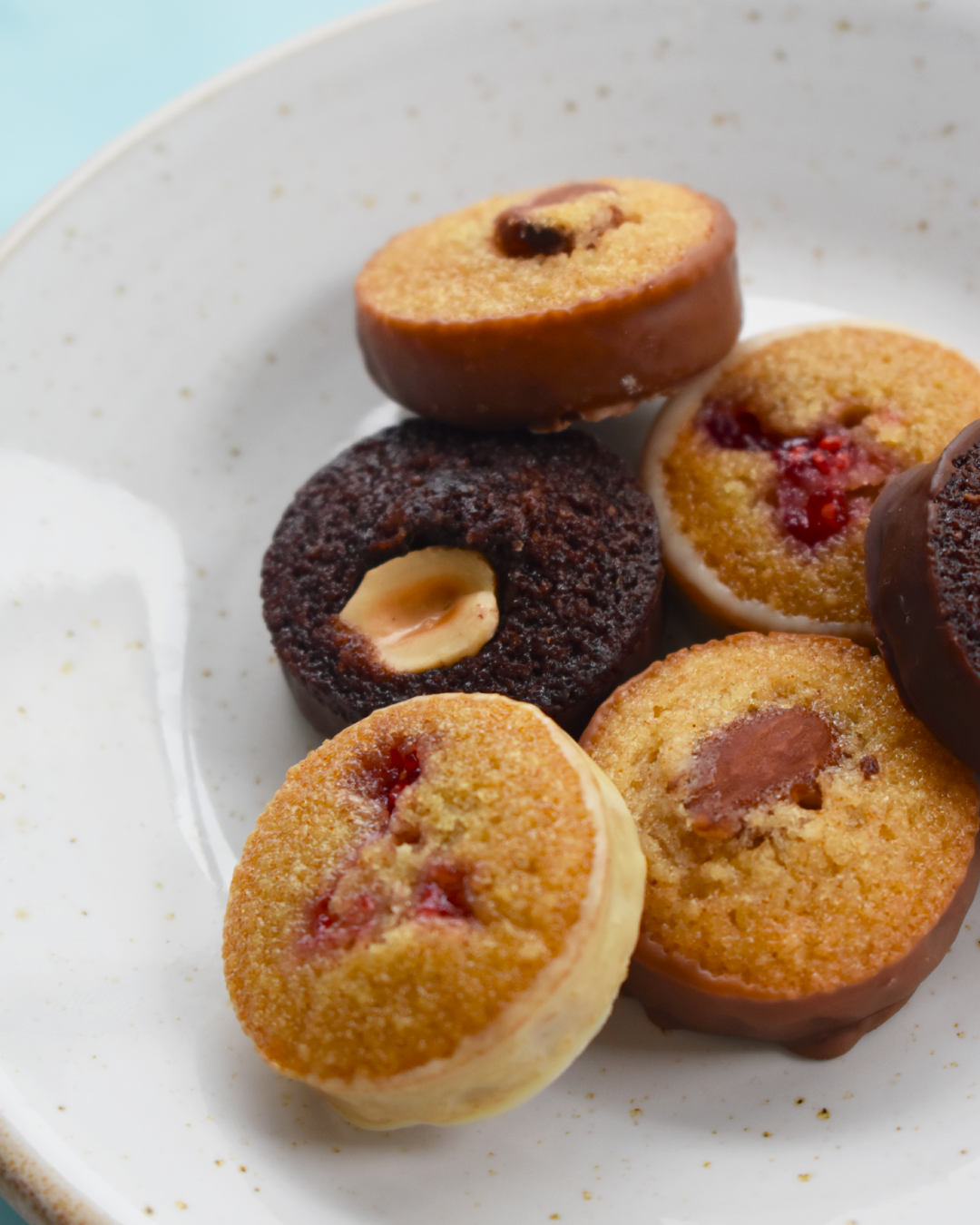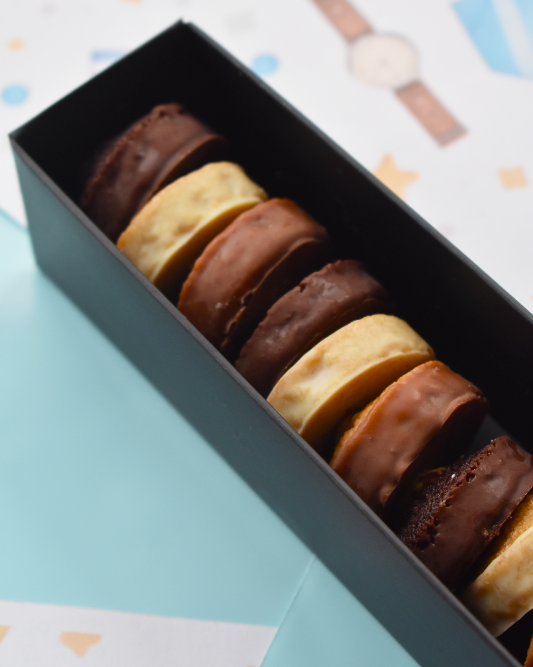 Pequenos bolos de massa húmida e macia envolvidos em chocolate.